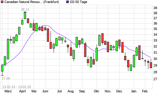 Mit dem Rücksetzer auf 29,51 EUR hat die Canadian Natural Resources-Aktie am 12.02.2025 die 50-Tage-Linie nach unten gekreuzt.