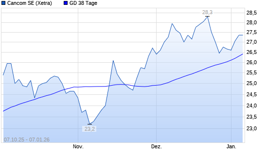 Mit dem Anstieg auf 26,55 EUR hat die Cancom-Aktie am 06.01.2026 die 38-Tage-Linie nach oben gekreuzt.