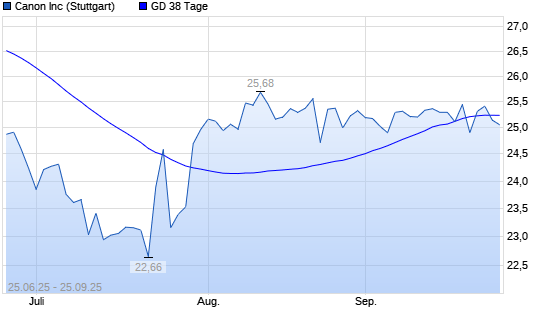Mit dem Rücksetzer auf 25,05 EUR hat die Canon-Aktie am 24.09.2025 die 38-Tage-Linie nach unten gekreuzt.