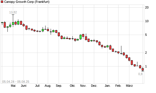 Mit dem Rücksetzer auf 0,82 EUR hat die Canopy Growth-Aktie (ISIN CA1380357048) am 04.04.2025 ein neues All-Time-Low erreicht und damit den Kurs vom 31.03.2025 eingestellt.