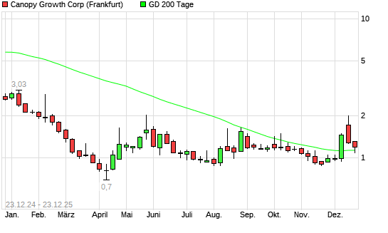 Mit dem Rücksetzer auf 1,13 EUR hat die Canopy Growth-Aktie am 22.12.2025 die 200-Tage-Linie nach unten gekreuzt.