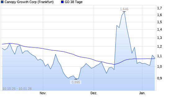Mit dem Rücksetzer auf 1,08 EUR hat die Canopy Growth-Aktie am 09.01.2026 die 38-Tage-Linie nach unten gekreuzt.