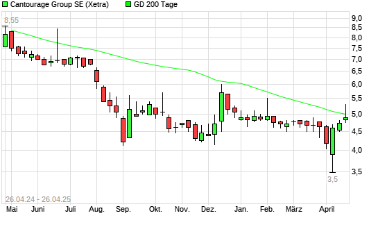 Mit dem Anstieg auf 4,68 EUR hat die Cantourage Group-Aktie am 25.04.2025 die 200-Tage-Linie nach oben gekreuzt.