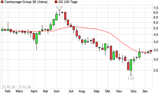 Mit dem Rücksetzer auf 2,89 EUR hat die Cantourage Group-Aktie am 16.01.2026 die 100-Tage-Linie nach unten gekreuzt.