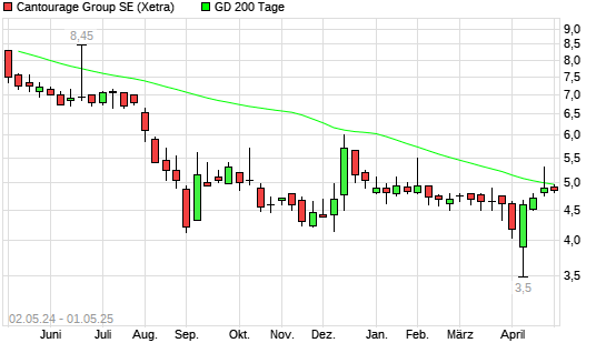 Mit dem Rücksetzer auf 4,47 EUR hat die Cantourage Group-Aktie am 30.04.2025 die 200-Tage-Linie nach unten gekreuzt.Die Cantourage Group-Aktie befand sich seit dem 29.04.2025 im langfristigen ...weiterlesen