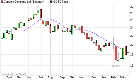 Mit dem Rücksetzer auf 18,63 EUR hat die Capcom-Aktie am 11.03.2026 die 50-Tage-Linie nach unten gekreuzt.