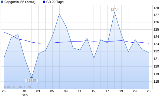 Mit dem Rücksetzer auf 122,05 EUR hat die Capgemini-Aktie am 25.09.2025 die 20-Tage-Linie nach unten gekreuzt.