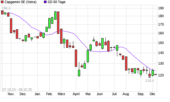 Mit dem Rücksetzer auf 123,65 EUR hat die Capgemini-Aktie am 06.10.2025 die 50-Tage-Linie nach unten gekreuzt.