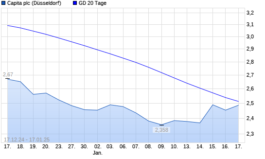 Mit dem Anstieg auf 0,16 EUR hat die Capita-Aktie am 16.01.2025 die 20-Tage-Linie nach oben gekreuzt.