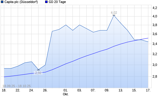 Mit dem Rücksetzer auf 3,38 EUR hat die Capita-Aktie am 17.10.2025 die 20-Tage-Linie nach unten gekreuzt.