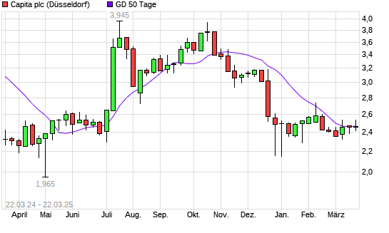 Mit dem Rücksetzer auf 0,15 EUR hat die Capita-Aktie am 21.03.2025 die 50-Tage-Linie nach unten gekreuzt.Die Capita-Aktie befindet sich seit dem 18.12.2024 im langfristigen Abwärtstrend ...weiterlesen
