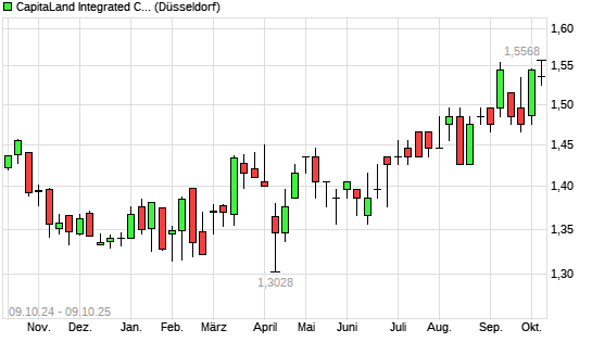 Mit dem Anstieg auf 1,58 EUR hat die CapitaLand Mall Trust-Aktie (ISIN SG1M51904654) am 08.10.2025 ein neues 3-Jahres-Hoch erreicht und damit den Kurs vom 12.09.2025 eingestellt.