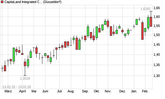 Mit dem Anstieg auf 1,64 EUR hat die CapitaLand Mall Trust-Aktie (ISIN SG1M51904654) am 12.02.2026 ein neues 5-Jahres-Hoch erreicht und damit den Kurs vom 11.02.2026 eingestellt.