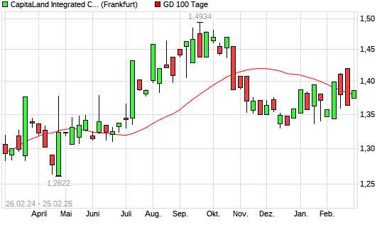 Mit dem Anstieg auf 1,39 EUR hat die CapitaLand Mall Trust-Aktie am 24.02.2025 die 100-Tage-Linie nach oben gekreuzt.