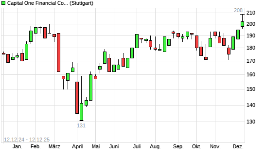 Mit dem Anstieg auf 204,00 EUR hat die Capital One Financial-Aktie (ISIN US14040H1059) am 11.12.2025 ein neues All-Time-High erreicht und damit den Kurs vom 20.02.2025 eingestellt.