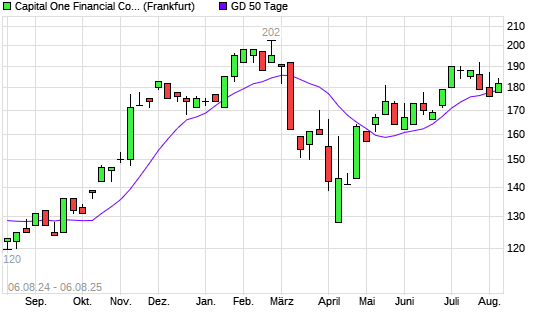 Mit dem Anstieg auf 184,00 EUR hat die Capital One Financial-Aktie am 05.08.2025 die 50-Tage-Linie nach oben gekreuzt.