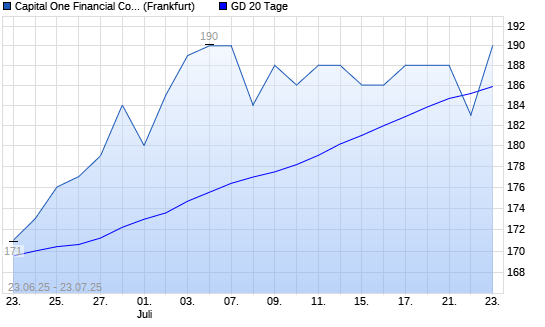 Mit dem Rücksetzer auf 183,00 EUR hat die Capital One Financial-Aktie am 22.07.2025 die 20-Tage-Linie nach unten gekreuzt.
