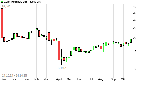 Mit dem Anstieg auf 19,57 EUR hat die Capri Holdings-Aktie (ISIN VGG1890L1076) am 23.10.2025 ein neues 6-Monats-Hoch erreicht und damit den Kurs vom 22.10.2025 eingestellt.