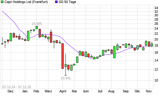 Mit dem Anstieg auf 19,14 EUR hat die Capri Holdings-Aktie am 06.11.2025 die 50-Tage-Linie nach oben gekreuzt.