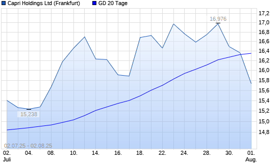 Mit dem Rücksetzer auf 15,73 EUR hat die Capri Holdings-Aktie am 01.08.2025 die 20-Tage-Linie nach unten gekreuzt.