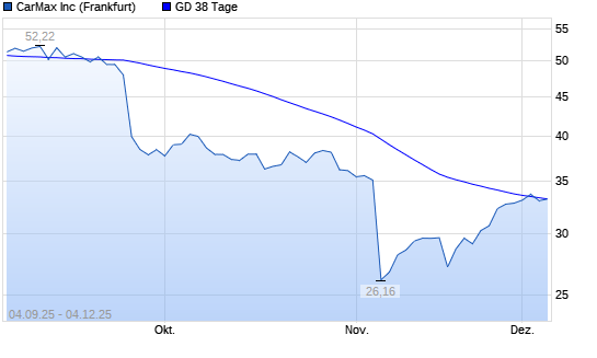 Mit dem Rücksetzer auf 33,07 EUR hat die CarMax-Aktie am 03.12.2025 die 38-Tage-Linie nach unten gekreuzt.