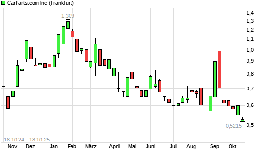Mit dem Rücksetzer auf 0,51 EUR hat die CarParts.com-Aktie (ISIN US14427M1071) am 17.10.2025 ein neues All-Time-Low erreicht und damit den Kurs vom 16.10.2025 eingestellt.