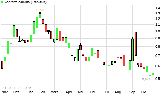 Mit dem Rücksetzer auf 0,50 EUR hat die CarParts.com-Aktie (ISIN US14427M1071) am 20.10.2025 ein neues All-Time-Low erreicht und damit den Kurs vom 17.10.2025 eingestellt.