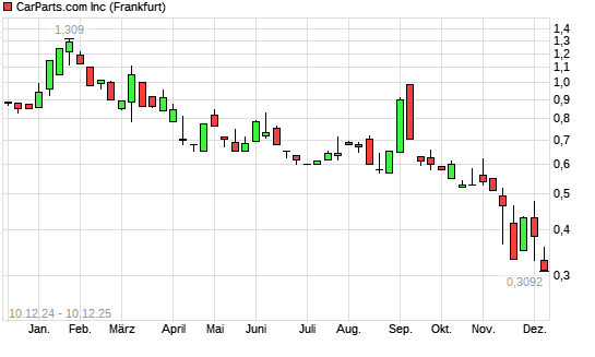 Mit dem Rücksetzer auf 0,32 EUR hat die CarParts.com-Aktie (ISIN US14427M1071) am 09.12.2025 ein neues All-Time-Low erreicht und damit den Kurs vom 08.12.2025 eingestellt.