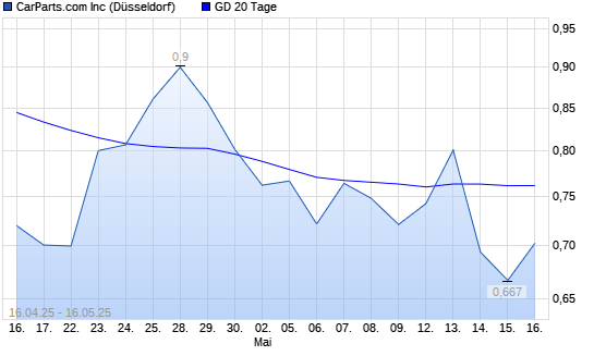 Mit dem Rücksetzer auf 0,65 EUR hat die CarParts.com-Aktie am 15.05.2025 die 20-Tage-Linie nach unten gekreuzt.