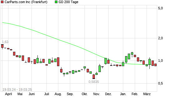 Mit dem Rücksetzer auf 0,87 EUR hat die CarParts.com-Aktie am 18.03.2025 die 200-Tage-Linie nach unten gekreuzt.