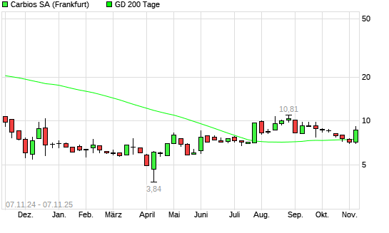 Mit dem Anstieg auf 8,63 EUR hat die Carbios-Aktie am 06.11.2025 die 200-Tage-Linie nach oben gekreuzt.