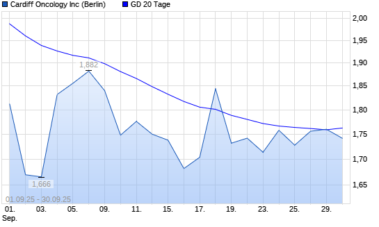 Mit dem Rücksetzer auf 1,68 EUR hat die Cardiff Oncology-Aktie am 29.09.2025 die 20-Tage-Linie nach unten gekreuzt.
