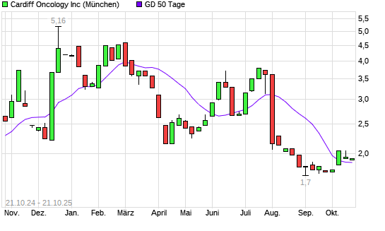Mit dem Rücksetzer auf 1,80 EUR hat die Cardiff Oncology-Aktie am 20.10.2025 die 50-Tage-Linie nach unten gekreuzt.