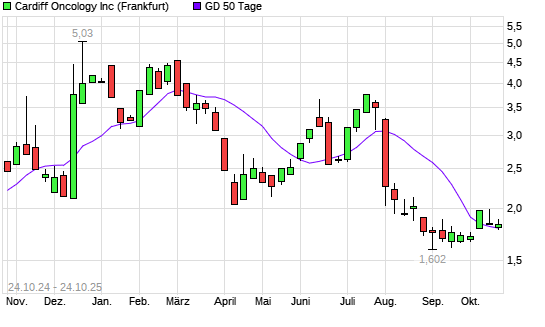 Mit dem Rücksetzer auf 1,78 EUR hat die Cardiff Oncology-Aktie am 23.10.2025 die 50-Tage-Linie nach unten gekreuzt.