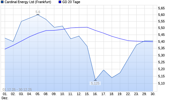 Mit dem Anstieg auf 5,40 EUR hat die Cardinal Energy-Aktie am 29.12.2025 die 20-Tage-Linie nach oben gekreuzt.Der Abstand zur 200-Tage-Linie beträgt aktuell +20,03%. ##trendBox## Die ...weiterlesen