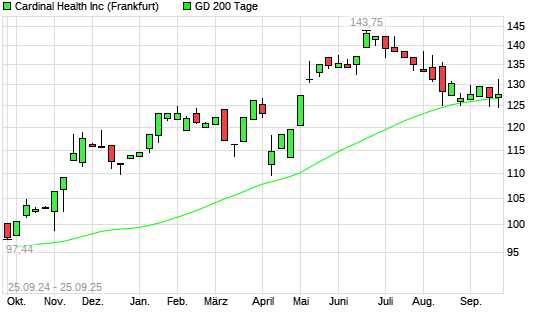 Mit dem Anstieg auf 130,65 EUR hat die Cardinal Health-Aktie am 24.09.2025 die 200-Tage-Linie nach oben gekreuzt.