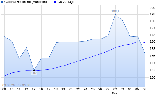 Mit dem Rücksetzer auf 185,10 EUR hat die Cardinal Health-Aktie am 06.03.2026 die 20-Tage-Linie nach unten gekreuzt.