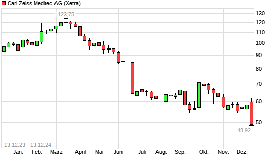 Mit dem Rücksetzer auf 51,60 EUR hat die Carl Zeiss Meditec-Aktie (ISIN DE0005313704) am 12.12.2024 ein neues 5-Jahres-Tief erreicht und damit den Kurs vom 11.12.2024 eingestellt.