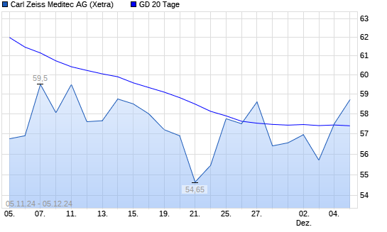 Mit dem Anstieg auf 57,80 EUR hat die Carl Zeiss Meditec-Aktie am 04.12.2024 die 20-Tage-Linie nach oben gekreuzt.