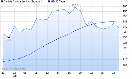 Mit dem Anstieg auf 348,90 EUR hat die Carlisle Cos-Aktie am 28.05.2025 die 20-Tage-Linie nach oben gekreuzt.
