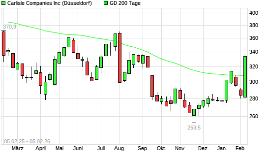 Mit dem Anstieg auf 311,30 EUR hat die Carlisle Cos-Aktie am 04.02.2026 die 200-Tage-Linie nach oben gekreuzt.