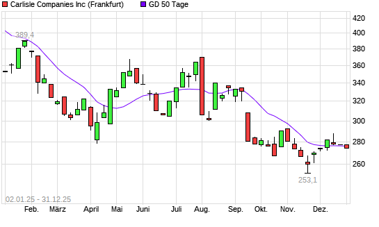 Mit dem Rücksetzer auf 273,90 EUR hat die Carlisle Cos-Aktie am 30.12.2025 die 50-Tage-Linie nach unten gekreuzt.