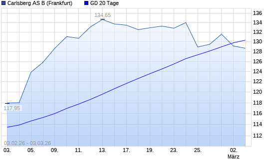 Mit dem Rücksetzer auf 129,10 EUR hat die Carlsberg B-Aktie am 02.03.2026 die 20-Tage-Linie nach unten gekreuzt.