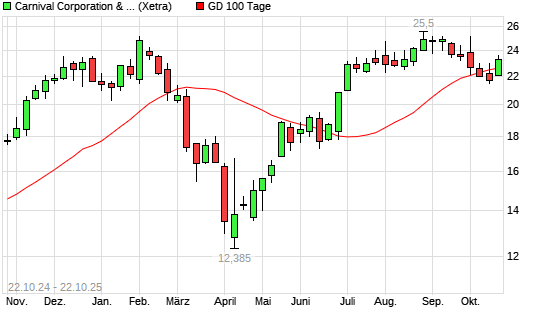 Mit dem Anstieg auf 22,88 EUR hat die Carnival-Aktie am 21.10.2025 die 100-Tage-Linie nach oben gekreuzt.