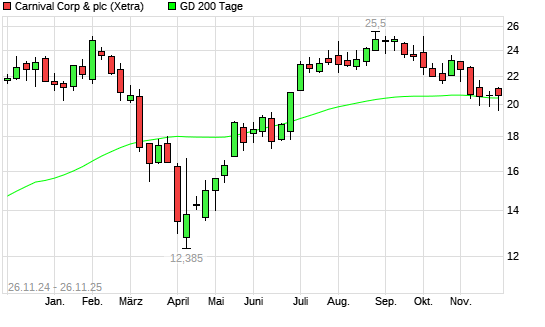 Mit dem Anstieg auf 20,21 EUR hat die Carnival-Aktie am 25.11.2025 die 200-Tage-Linie nach oben gekreuzt.
