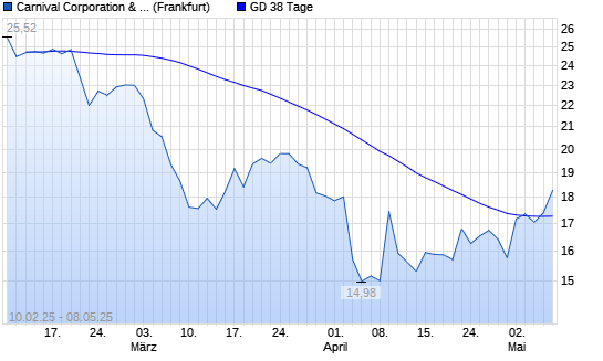 Mit dem Anstieg auf 17,40 EUR hat die Carnival Corporation-Aktie am 07.05.2025 die 38-Tage-Linie nach oben gekreuzt.