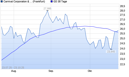 Mit dem Anstieg auf 25,71 EUR hat die Carnival Corporation-Aktie am 22.10.2025 die 38-Tage-Linie nach oben gekreuzt.