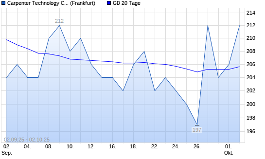 Mit dem Anstieg auf 206,00 EUR hat die Carpenter Technology-Aktie am 01.10.2025 die 20-Tage-Linie nach oben gekreuzt.