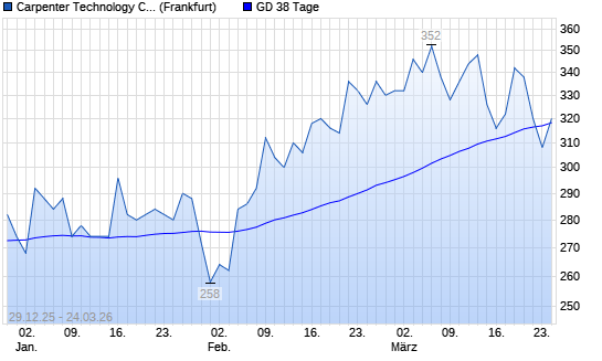 Mit dem Rücksetzer auf 312,00 EUR hat die Carpenter Technology-Aktie am 23.03.2026 die 38-Tage-Linie nach unten gekreuzt.