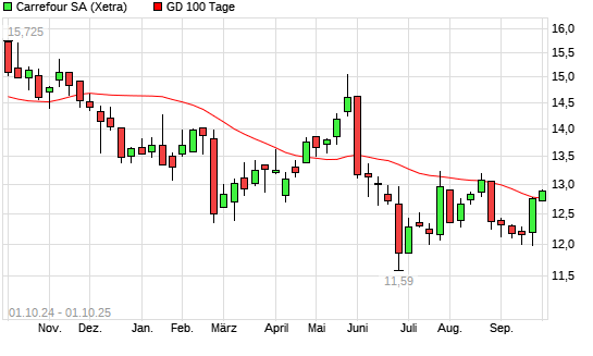 Mit dem Anstieg auf 12,78 EUR hat die Carrefour-Aktie am 30.09.2025 die 100-Tage-Linie nach oben gekreuzt.
